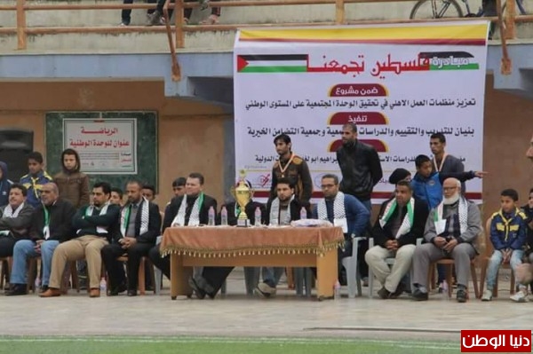نظمت جمعية بنيان للتدريب والتقييم والدراسات المجتمعية مباراة ودية بعنوان: "فلسطين تجمعنا"، بين فريق قدامى خان يونس وفريق قدامى رفح بالشراكة مع مؤسسة التضامن الخيرية بتمويل من مؤسسة بال ثينك للدراسات الإستراتيجية ومعهد إبراهيم للدراسات الدولية ضمن مشروع تعزيز منضمات العمل الأهلي في تحقيق الوحدة المجتمعية على المستوى الوطني.