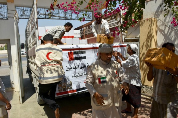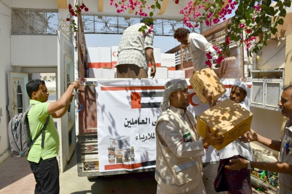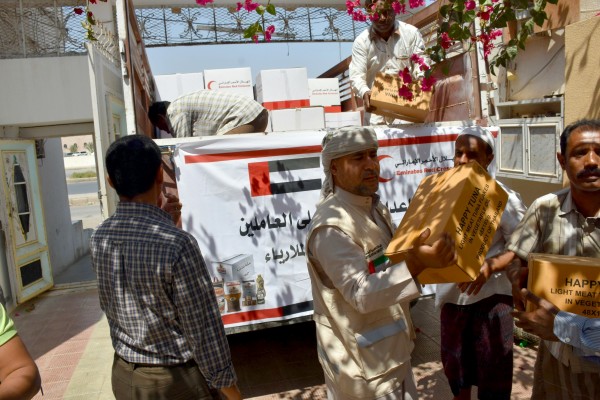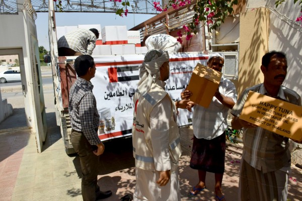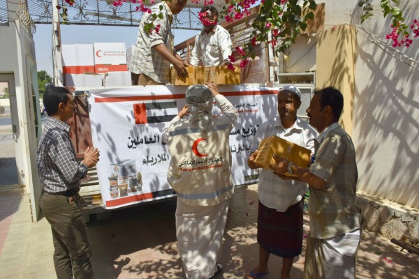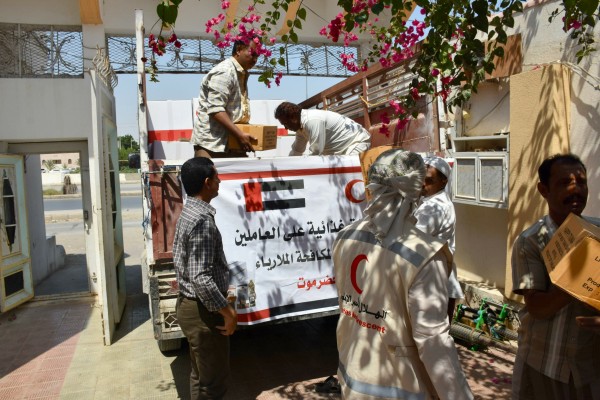 وزعت هيئة الهلال الأحمر الإماراتي اليوم الأحد، مساعدات غذائية لعمال وموظفي البرنامج الوطني لمكافحة الملاريا بالمكلا.