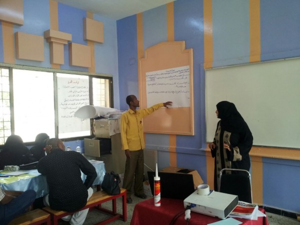 دشن مدير مكتب التربية والتعليم في محافظة عدن الأخ محمد عبد الرقيب دورة انتاج الوسيلة التعليمية وتصميمها ومعه الاخت مايسة عشيش رئيسة شعبة التدريب والتأهيل والأخ وضاح مهيوب مدير إدارة التدريب والتأهيل.
