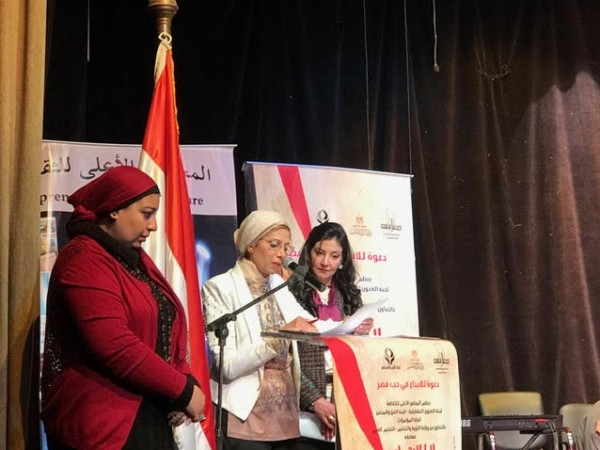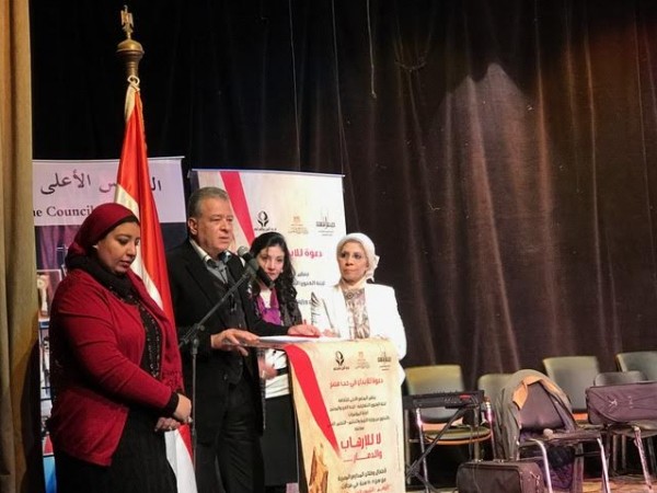 كَرّم الكاتب حلمى النمنم وزير الثقافة، عددًا من أمهات الشهداء اللاتى فقدن أبنائهن بسبب يد الإرهاب الغادرة، ثم شرع فى تكريم التلاميذ الفائزين فى مسابقة الفن التشكيلى "لا للإرهاب والدمار، دعوة للإبداع فى حب الوطن"، التى أطلقها المجلس الأعلى للثقافة من خلال لجنتى الفنون التشكيلية، والفن والمجتمع، بالاشتراك مع إدارة أمانة المؤتمرات، وبالتعاون مع وزارتى التربية والتعليم، والتعليم الفنى، وذلك بحضور كلا من: د.أحمد نوار مقرر لجنة الفنون التشكيلية، د.سهير عثمان مقررة لجنة الفن والمجتمع، بالإضافة لحضور نخبة كبيرة منقيادات وزارةالتربية والتعليم من مختلف المحافظات، والمثقفين والمهتمين بقضايا التعليم والفن التشكيلى، وشارك فى المسابقة أكثر من خمسمائة متسابق من فئات عمرية مختلفة، بداية من سن خمسة أعوام إلى ثمانية عشر عاما.