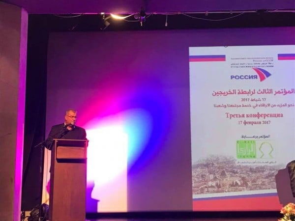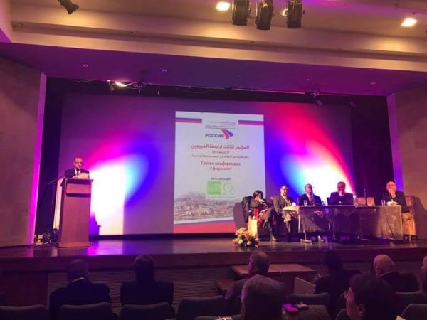 وقدم رئيس لدنه المتابعة العليا محمد بركه كلمه هامه مهنئا الجمعية ومشيرا لدور الخريجين العلمي والاجتماعي في ارتقاء المجتمع الفلسطيني ودعا الاكاديميين للمشاركة في مؤتمرات المتابعة وخصوصا مؤتمر القدرات والرأسمال التخصيصي الذي سيعقد قريبا. ثم قدم ممثل السفارة الروسية البروفسور الكسندر كروكوف كلمه حاره للمؤتمر اشار بها لا هميه العلاقة الحميمة بين الجامعات والخريجين والدولة الروسية والسفارة ،واشاد بدور الرابطة ونشاطها ودورها في التبادل الثقافي بين شعبينا ثم قرأ اعضاء الجمعية تحيات حاره للمؤتمر من جمعيات صديقه فلسطينية والاتحاد العربي للخريجين وجمعية الخريجين العالمية التي مقرها في موسكو ومن جامعة بيلغاراد .