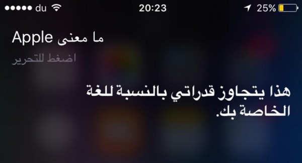 ومنذ إطلاق خدمة المساعد الصوتي Siri"" بالعربية لهواتف آيفون والانتقادات التي طالت الخدمة لم تتوقف، واعتبر بعض مستخدمي آبل الخدمة العربية "مستفزة" لما تعانيه من عدم دقة وصعوبة في التواصل مقارنة مع الإصدارات باللغات الأخرى على الأقل.