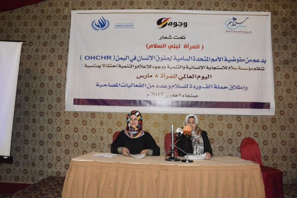 احتفلت مؤسستي وجوه للإعلام والتنمية وسلام للاستجابة الانسانية والتنمية اليوم بصنعاء وبدعم من المفوضية السامية لحقوق الإنسان باليوم العالمي للمرأة الـ 8 من مارس بمشاركة كبيرة من النساء اليمنيات العاملات في المجتمع المدني والوسط الأدبي والثقافي والشابات المتطوعات في المبادرات الشبابية ونخبة من شخصيات المجتمع.