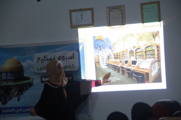 أما المداخلة المركزية الثانية فكانت للطالبة الجامعية ولاء أبو عيطة خريجة دورة عيون البراق لتأهيل المرشدين في الأقصى المبارك التي قامت بتقديم مدخل تعريفي عام وشامل عن المسجد الأقصى وبعض معالمه من خلال عرض محوسب. ووجهت