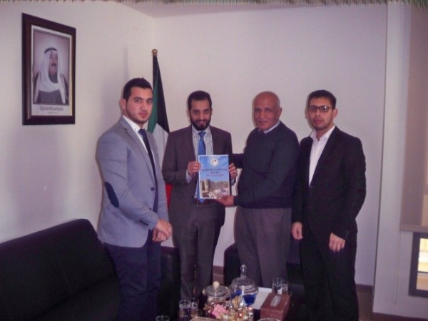 استقبل القائم بأعمال سفارة دولة الكويت في لبنان السيد محمد الوقيان، وفداً من المؤسسة الفلسطينية لحقوق الإنسان (شاهد) ضم الأستاذ محمد الشولي مسؤول العلاقات العامة والاعلام، والباحث القانوني الأستاذ حسن السيدة والباحث الاجتماعي الأستاذ حسن العريض.
