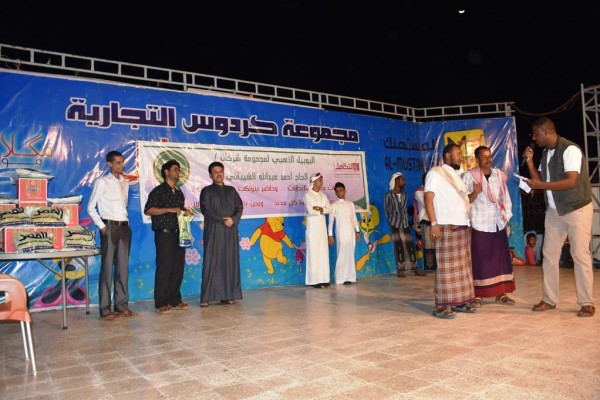 وفي ختام الحفل قامت شركة التكامل بتوزيع عدة اصناف من منتجاتها على جمهور مسرح الطفل بالمكلا مول.