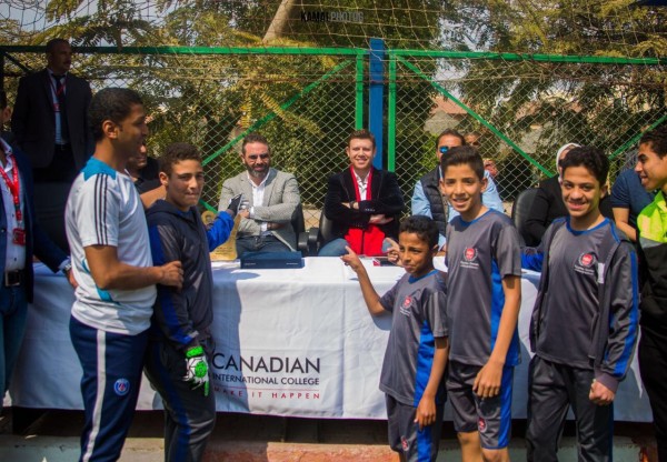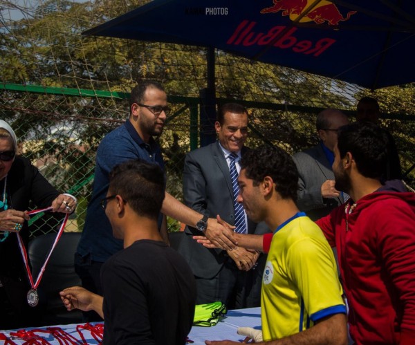 وقام دكتور محمد رشيدى رئيس مجلس ادارة المدرسة بتقديم درع التكريم للنجوم واقاموا مباراه وديه مع طلبة المدرسة.