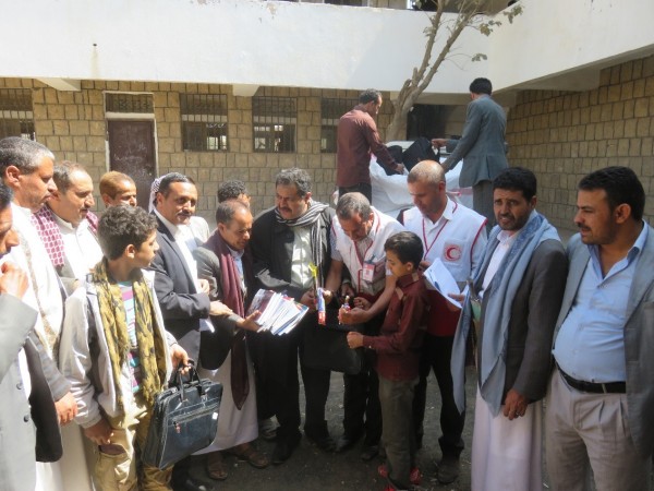 استجابة للظروف الإنسانية الصعبة والحالة المعيشية للمواطنين الناتجة بفعل ظروف الحرب والصراع التي يشهدها اليمن قام الهلال الأحمر اليمني فرع عمران بتوزيع 162 حقيبة مدرسية في مدرسة محسن الصعر بمدينة عمران للطلاب النازحين وأبناء العائلات والأسر الفقيرة والأشد ضعفاً في مديريتي عمران وجبل عيال يزيد، ومما تجدر الإشارة إليه أن الحقائب الموزعة على المستفيدين تتضمن كافة مستلزمات الطالب الضرورية من دفاتر و أقلام وألوان و هندسيات و قرطاسيات ونحوها.