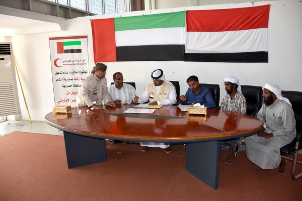 وقع الاتفاقية ممثل الهلال الأحمر الإماراتي بحضرموت السيد عبدالله المسافري مع شركة شخمر للمقاولات، وبحضور مدير مكتب التربية والتعليم الاستاذ وليد عوض الصياد ومدير مدرسة زغفة عمر سالمين جرير ورئيس لجنة متابعة المنطقة مصطفى فرج باتقيلي ومشرف مشاريع الهيئة بحضرموت شوقي التميمي.