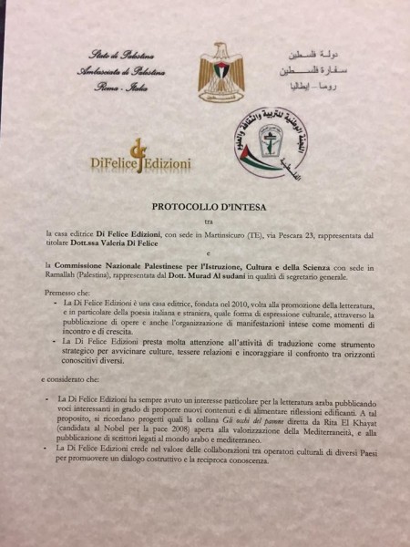 وأكد روسي على ضرورة تفعيل إتفاقية التعاون بين اتحاد كتاب ايطاليا والاتحاد العام للكتاب والادباء الفلسطينيين التي وقعت العام الفارط .