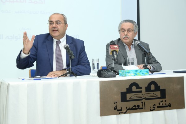 وأضاف في محاضرة القاها مساء اليوم الاربعاء في منتدى العصرية بعنوان: " التحديات الأحدث التي تواجه الأهل في 48 " وأدارها الدكتور أسعد عبد الرحمن عضو مجلس امناء مؤسسة فلسطين الدولية ورئيس هيئة مديري المدارس العصرية: أن المحتل يمكن أن يشوه التاريخ ولكنه لا يستطيع أن يلغي طموحات شعب يطالب بحقوقه بكل إصرار.