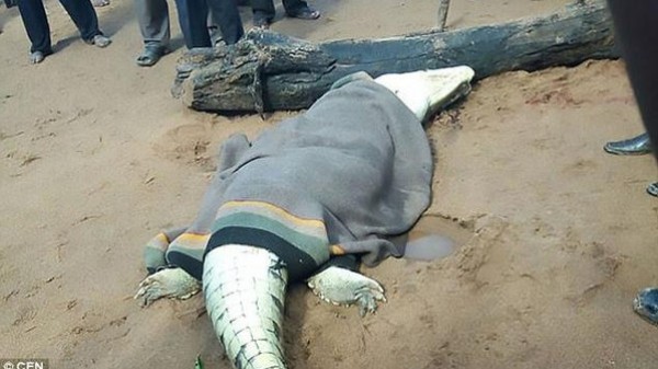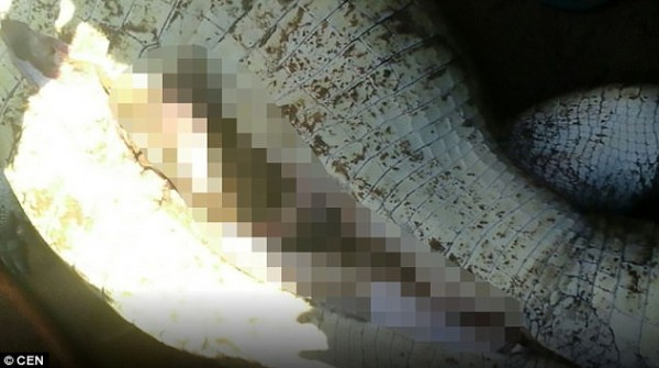 وانتابت الشكوك الأهالي أن هذا التمساح هو الذي التهم الطفل في وقت سابق، فأطلقوا عليه النار، ثم شقوا بطنه ليجدوا بقايا الصبي.