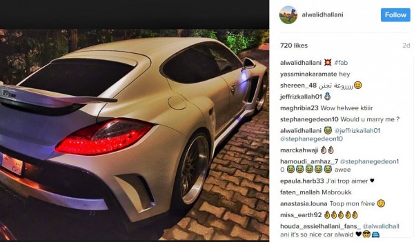 حيث نشر الوليد الحلاني صورة لسيّارته من نوع بورش عبر حسابه الخاص على انستغرام وقد حظيت الصورة بتعليقات كثيرة حتى أن إحدى المتابعات طلبت الزواج منه.