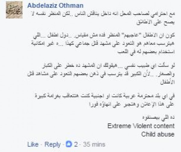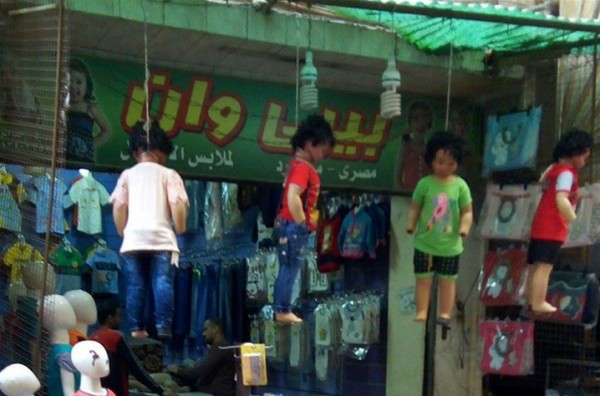أظهرت الصورة تعليق المحل لعدد من المانيكان على هيئة أطفال وكأنها مشنوقة مما أثار غضب الكثيرين، وقال رامي الصاوى: "يعني لما طفل يشوف المنظر ده ويثبت في عقله طبيعي ممكن يعمله في واحد صاحبه بيلعب معاه، للأسف عندنا جهل في سيكولوجية الطفل".