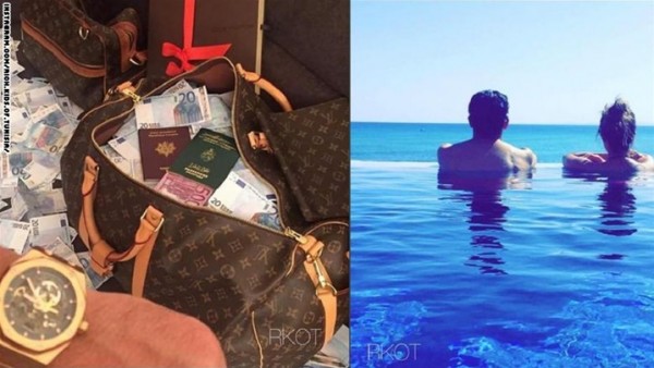 ظهرت فتاة وهي تجلس بداخل سيارة فيراري، بينما اختار الشاب أن يظهر سيارة "أودي" خاصته، أما في صورة أخرى ظهرت كميات كبيرة من العملة التونسية.