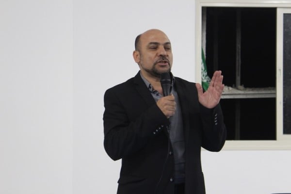 ثم قام الاخ محمد شعار طالب كلية الشريعة بقراءة ما تيسر من القران الكريم لتكون الكلمة الاولى للاستاذ ابراهيم حجازي رئيس الحركة الاسلامية في طمرة ورئيس المكتب السياسي القطري للحركة الاسلامية.
