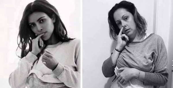 نشرت امرأة صورها على موقع التواصل الاجتماعي "فيس بوك" بعد تقليدها بشكل طريف، لعدد من المشاهير الذين يشاركون صورهم عبر إنستجرام.