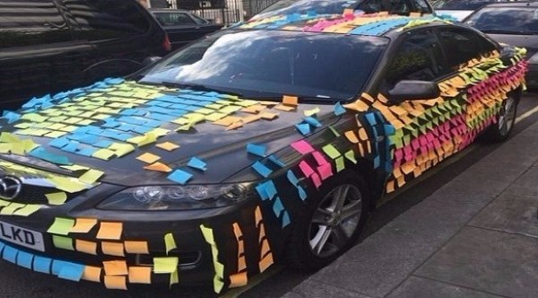وكانت السيارة استُهدفت يوم الأحد الماضي في هامرسميث شمالي لندن، ولم يعرف بعد إذا كان صاحبها قد شاهد الأعداد الكبيرة من أوراق الملاحظات الملونة وهي تغطي السيارة، بحسب صحيفة ديلي ميل البريطانية.
