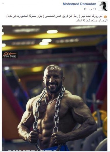 «تيتو».. الذي أصبح في يوم وليلة نجم معروف لرواد مواقع التواصل الاجتماعي، عقب نشر «الأسطورة» صورة له، يُهنئه على الفوز ببطولة الجمهورية لكمال الأجسام، والوصول إلى بطولة العالم، بعد قصة كفاح استطاع فيها الحارس الخاص لمحمد رمضان تحقيق النجاح.