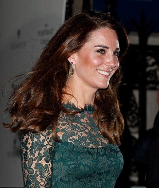 - ومؤخراً فى 28 مارس شاركت كيت ميدلتون فى معرض الصور الوطنية بلندن وارتدت فستان طويل زيتى اللون، وارتدت أقراط جاءت تكلفتها 8900 جنيه إسترلينى.