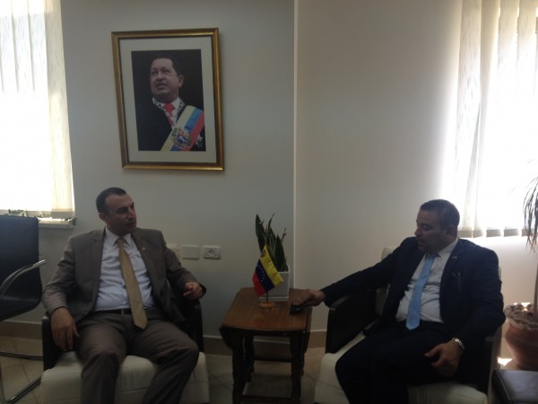 إلتقى المهندس "عماد مطير" مُنسق دائرة أمريكا اللاتينية في مفوضية العلاقات الدولية لحركة التحرير الوطني الفلسطيني " فتح" أمس الاثنين سفير فنزويلا في فلسطين "ماهر طه" لمتابعة الشكر والعرفان لدولة فنزويلا حكومة وشعباً لمساندتهم لشعبنا الفلسطيني وحقوقه المشروعه والتي كان اخرها تبنيها لطلب ادانة الاستيطان في مجلس الأمن ، مشيراً بأن فنزويلا تقف دائما مع القيم البشرية وكرامة الانسان في وجه الظلم.