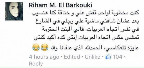 بينما طلب رجال آخرون تحكمات أخرى مثل عدم ركوب الميكروباص فى الذهاب إلى الجامعة واستخدام المترو فقط، وطالب أحدهم عدم سير حبيبته فى الشارع فى نفس اتجاه العربيات لأن هذا فى مفهومه، أنها تستفز المارة فى الشارع ليتحرشوا بها.