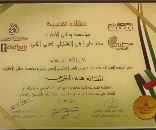 واضافت هبة انها قامت بتدريس الفن التشكيلي في نادي سيدات الشارقة واقامت ورش عمل للسيدات والاطفال هناك