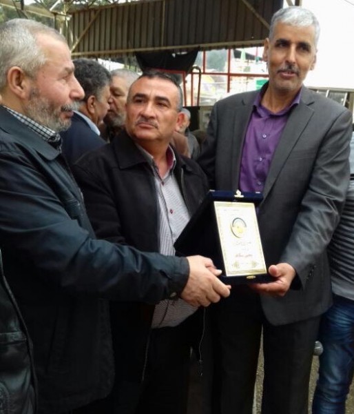 وفي الختام، قدم ممثلو الفصائل ولجان العمل لجمال سكاف، درعاً تكريمية عربون إحترام وتقدير للأسير سكاف وعائلته.