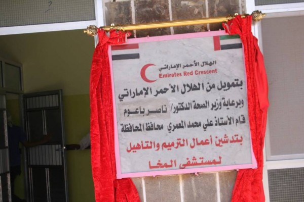 الامارات تقوم بافتتاح مستشفى المخا بتعز والمعمري يشيد بجهود الهلال