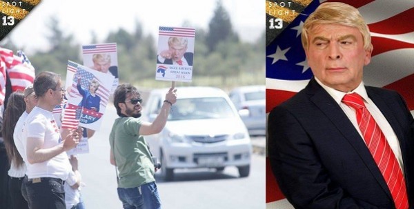 تناقلت شبكات إخبارية وصفحات موالية للنظام السوري عبر مواقع التواصل الاجتماعي صوراً ومقاطع مصورة تظهر قيام الممثل "سلوم حداد" بتمثيل مشهد يجسد فيه شخصية الرئيس الأمريكي دونالد ترامب.