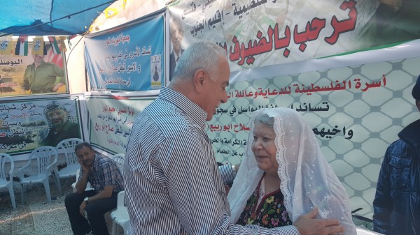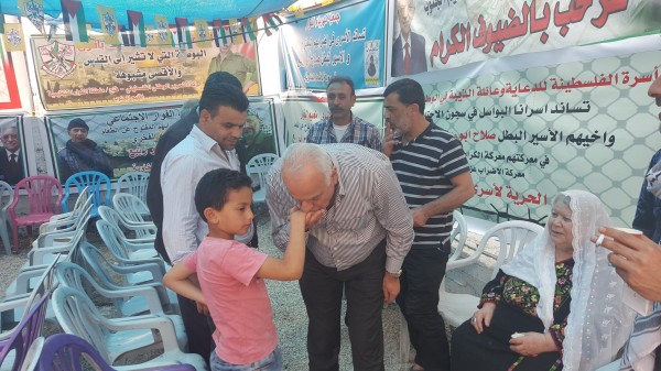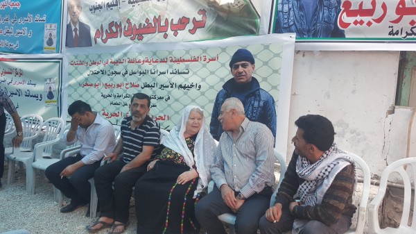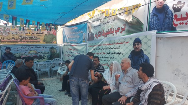 كما أكد عضو إقليم شمال الخليل الأسير المحرر ناجح مقبل في كلمته التي ألقاها على ضرورة الوقوف خلف أسرانا في هذه المعركة مؤكدا بأن النصر سيكون حليفهم بقيادة القائد مروان البرغوثي الذي يقود هذا الإضراب ، وبعد انتهاء وقفة التضامن توجه اللواء أبو العينين إلى مخيم الفوار لزيارة خيمة التضامن مع الأسرى البواسل التي أقيمت لدعم وإسناد الأسرى الأبطال والأسير البطل ابن مخيم الفوار القائد صلاح الدين ابو ربيع الذي يخوض إضرابا مفتوحا عن الطعام رفقة الأسود الرابضة خلف القضبان لنيل الحرية والكرامة ، ليلتقي بابن الأسير صلاح أبو ربيع ويقبله ،كما التقى بوالدة الأسير المحرر سامي الجنازرة والذي خاض تجربة الإضراب المفتوح عن الطعام لمدة 73 يوما