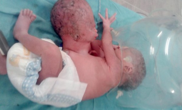 وصدم الأطباء عند رؤية رأس إضافي كامل للطفلة ملتصق في بطنها، له عينان وأذنان وأنف وشفتان وله يد يسرى مشوهة معلقة أسفل صدرها، وأحالوا الطفلة إلى مستشفى آخر لإجراء عملية جراحية لفصل الرأس عن الرضيعة، والتي استغرقت أربع ساعات.