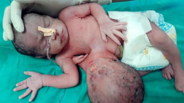 أندر حالات التوءم الطفيلي.. طفلة هندية برأس إضافي ملتصق ببطنها