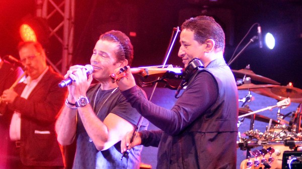 تخلل الحفل دويتو أغنيتي "أيام وبنعشها" و"قالي الوداع" التي قدمهما مع بطل الأسكواش العالمي رامي عاشور الذي قدمه الهضبة للجمهور وسط تفاعل كبير.