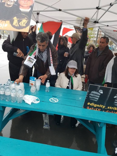 تضامنا ومساندة للأسرى في سجون الاحتلال الاسرائيلي، دعى التحالف الفلسطيني و الجالية الفلسطينية فيمنطقة تورونتو الى وقفة اعتصامية في الساحة العامة امام بلدية ميسيساجا بالقرب من مدينة تورونتو مساء الجمعة للتضامن مع اضراب الاسرى الفلسطينيين.
