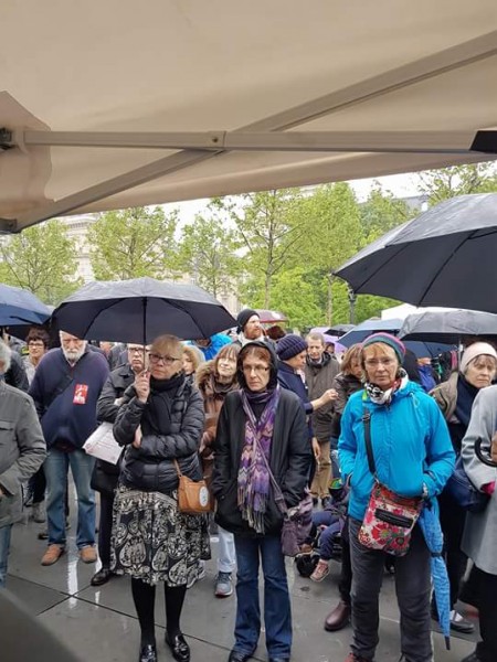 حيث تجمع المئات تحت المطر لتعبير عن تضامنهم ومناصرتهم للأسرى حيث تخلل النشاط العديد من الكلمات وبمشاركة أعضاء بلديات ورؤساء جمعيات فرنسية.