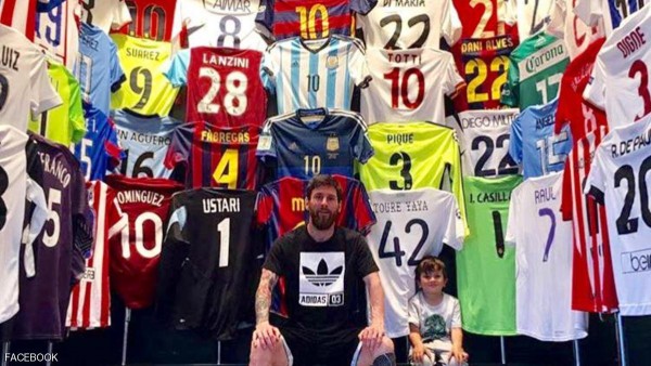 نشر النجم الأرجنتيني، ليونيل ميسي، مهاجم برشلونة الإسباني، صورة له على موقع (انستجرام)، مع نجله تياغو في متحفه الخاص بالقمصان التي تبادلها مع نجوم اللعبة.