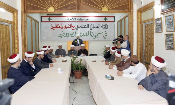 نظّم علماءُ دين من حركةِ التوحيدِ الإسلامي، والهيئةِ السُّنيةِ لنُصرةِ المقاومة، وحركةِ الإصلاحِ والوَحدة، وحركةِ الأمّة، لقاءً تضامنياً معَ الأسرى المعتقَلينَ في سجونِ الاحتلال الاسرائيلي، في مقرِّ حركةِ الأمةِ ببيروت.