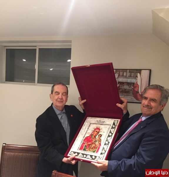 وفي مقر إقامة السفير، وبحضور عدد كبير من السفراء العرب وأعضاء برلمانيين مثلوا العديد من القوى السياسية في البرلمان الكندي، قام السفير نبيل معروف بتكريم السيناتور الكندي بيير ديبانه، على مواقفه وأرائه الجريئة والداعمة دوماً للحق الفلسطيني.