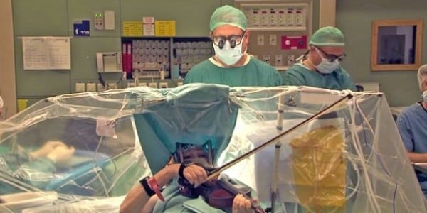 أحيت عازفة الكمان اللتوانية ناعومي إيليتشوف حفلاً خاصاً، للطاقم الطبي الذي أجرى لها جراحة لزرع جهاز النبضات في الدماغ في 9 سبتمبر (أيلول) 2014، وعزفت على الكمان طوال فترة الجراحة، بعد أن أجبرها مرض الرعاش على التوقف عن العزف قبل عقدين من الزمان.