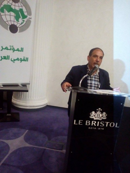 ورأى أنّ القضية الفلسطينية كانت وستظلّ القضيّة المركزيّة لحركة التّحرّر العربيّة الأمر الذي يتطلب من قواها واحوابها وشخصياتها مشاركة شعب فلسطين وقواه وفصائله في مقاومة الاحتلال والاستيطان والتّصدّي لمشاريع التّسوية التي تستهدف حقوق شعب فلسطين الوطنيّة غير القابلة للتّصرّف بكلّ الوسائل المشروعة ، داعيا الى تشكيل جبهة شعبية عربية ، للتّصدّي للمشروع الامبريالي الاسرائيلي الذي يستهدف المنطقة والقضية الفلسطينية وتطوير وتعميم حركة مقاطعة الكيان الاسرائيلي سياسيّا واقتصاديّا وثقافيّا ورياضيّا وأكاديميّا وعلى سائر المستويات ومطالبة الهيئات والأحزاب التّقدّميّة في العالم لدعم هذا التّوجّه