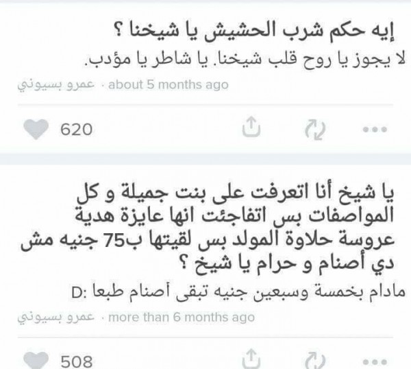 أثارت ردود داعية إسلامي شاب يدعى عمرو بسيونى عبر تطبيق "ask" ضجة كبيرة، بسبب حسه الفكاهى في الرد على أسئلة متابعيه.