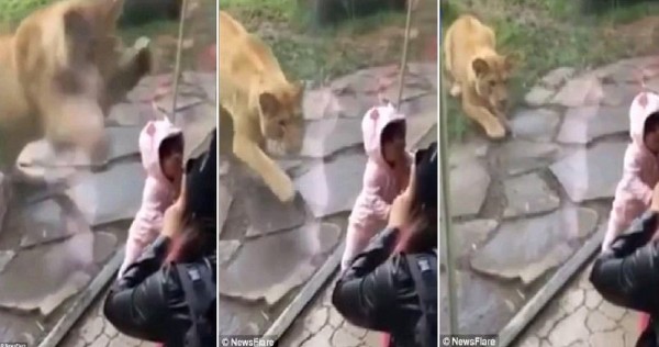 لم تعلم هذه الأم الأمريكية وهي تلتقط صورا لطفلتها أمام بيت الأسد، بحديقة حيوان في ولاية أوريجون، أنها ستحصل على شريط يظهر هجوم الأسد الصغير على الطفلة، ومحاولة خطفها وسط صرخات الجميع.