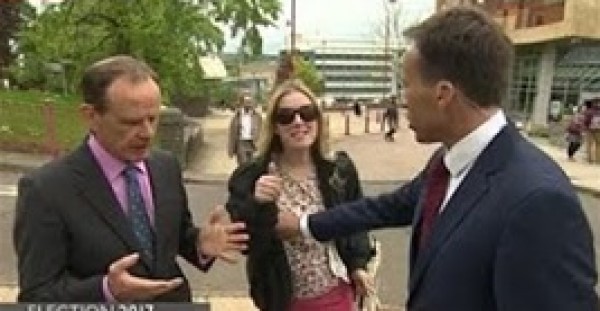 تعرض مراسل بي بي سي بن براون لموقف لا يحسد عليه عندما كان يتحدث مع زميله في الشارع عن انتخابات حزب العمل في بث مباشر.