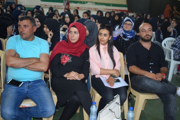 بداية عريفة الاحتفال الطالبة فاتن عزام، وتلت الطالبة سالي الزيني آيات من الذكر الحكيم، تلاها النشيد الوطني الفلسطيني.