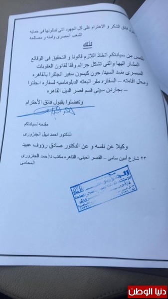 وهو الغضب الشعبي الذي عبر عنه د. صادق رؤوف بإعلان التقدم ببلاغ إلي النائب العام ، ضد الارهابي المرتزق سفير بريطانيا الصغري في مصر ، تولي مهمته الدكتور أحمد الجنزوري، أستاذ القانون الجنائي بكلية الحقوق جامعة عين شمس .