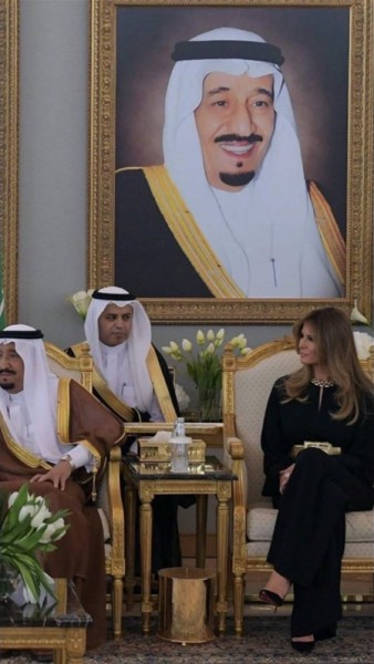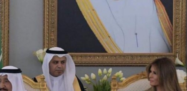 تداول مستخدمو موقع "تويتر" صورًا لنظرة المترجم السعودي، لزوجة الرئيس الأمريكي دونالد ترامب، ميلانيا، أثناء مباحثات مع العاهل السعودي الملك سلمان في مطار خالد بالرياض.
