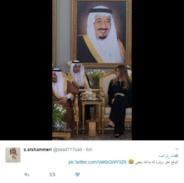 وسخر السعوديون من نظرة المترجم لميلانيا، قائلين: "إنها آخر مرة يزور فيها ترامب السعودية".