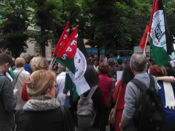 نظم الاتحاد العام للشغل في فرنسا (سي. جي. تي) اعتصاما في باريس، يوم الخميس 18 أيار، تضامنا مع الأسرى في المعتقلات الصهيونية في فلسطين المحتلة.
