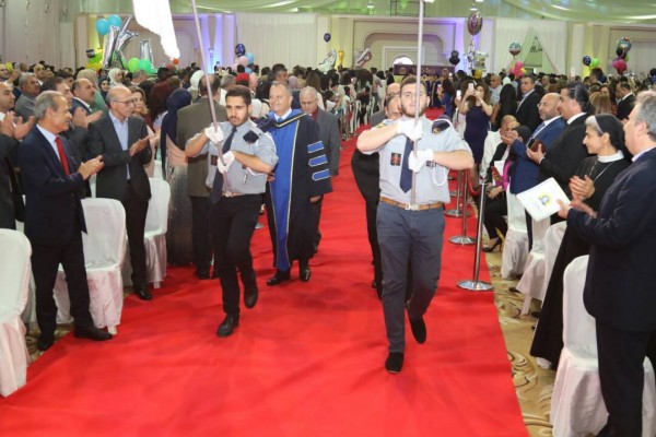 افتتح حفل التخرج بدخول موكب الخريجين، تلاه النشيد الوطني اللبناني، ونشيد المدرسة، ثم كانت صلاة افتتاحية للقسيس ميخائيل سبيت، بارك فيها المدرسة وطلابها وأهلهم، وأفراد الهيئة التعليمية والإدارية، وكل العاملين فيها. تلتها كلمة لمدير قسم الثانوي والمهني الأستاذ شادي مشنتف، رحب فيها بالحضور، ومن ثم كانت كلمات لعدد من المتخرجين المتفوقين.